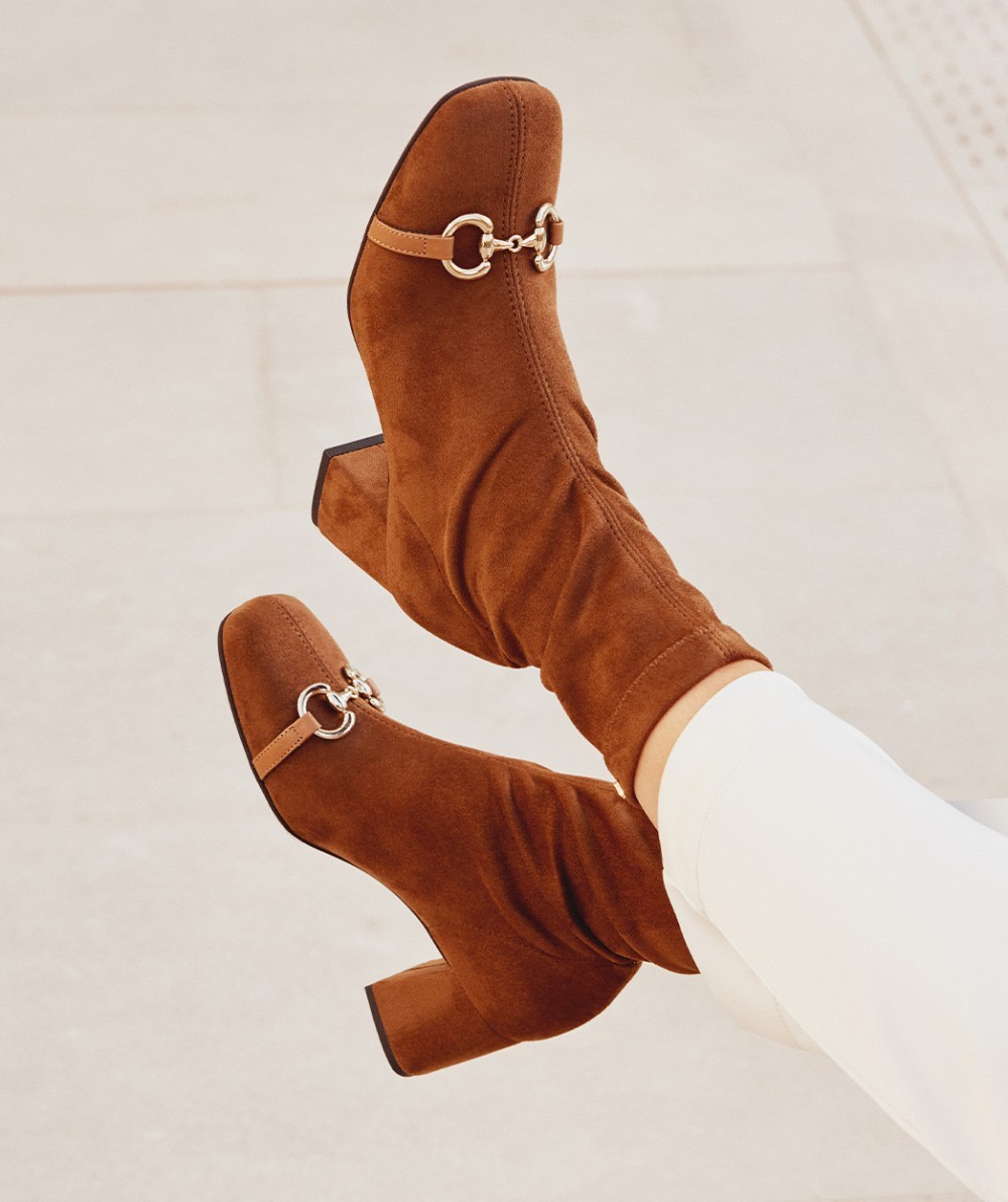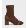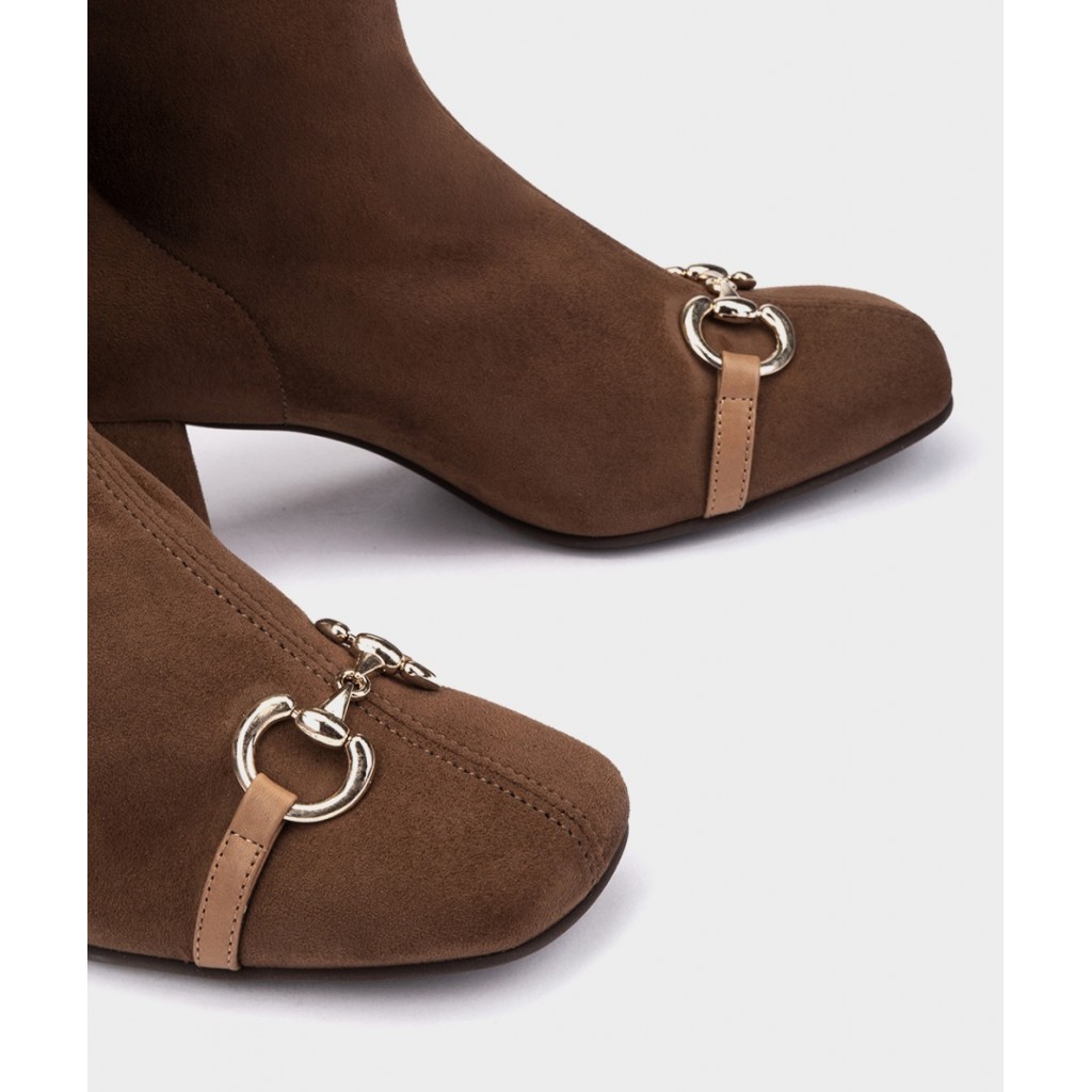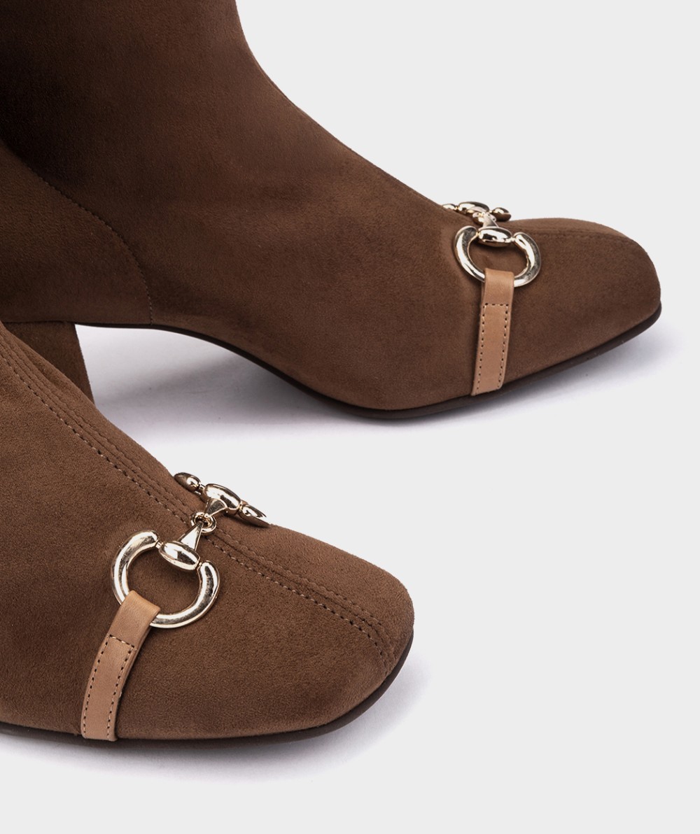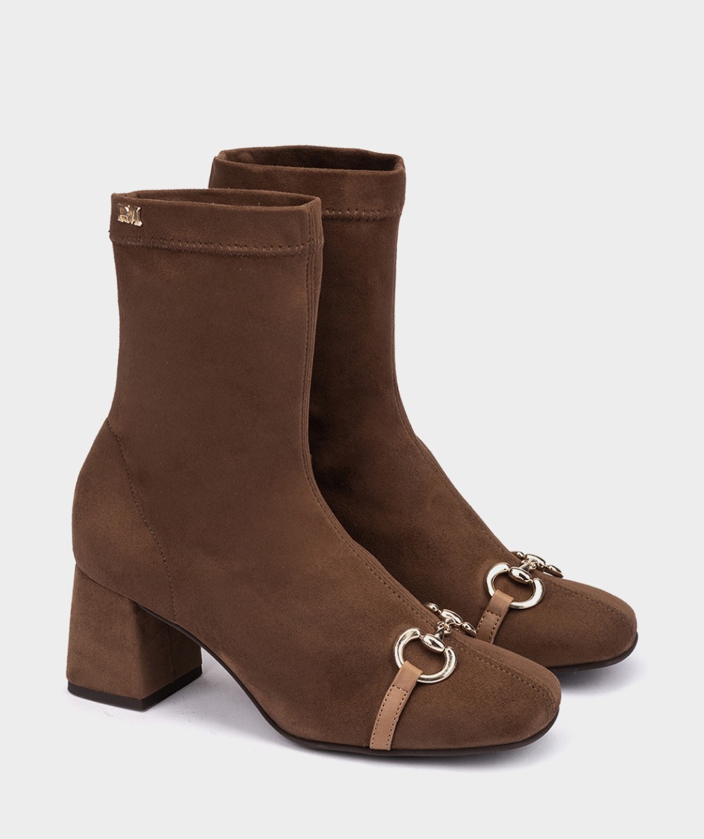 Botines de tacón fabricados en tejido elástico. Botines de tacón fabricados en tejido elástico. Este diseño destaca por su silueta de punta cuadrada y la sutileza de los adornos colocados sobre el empeine. Un diseño distinguido y diferente que añadirá un toque original a tus conjuntos. Altura tacón: 7 cm.