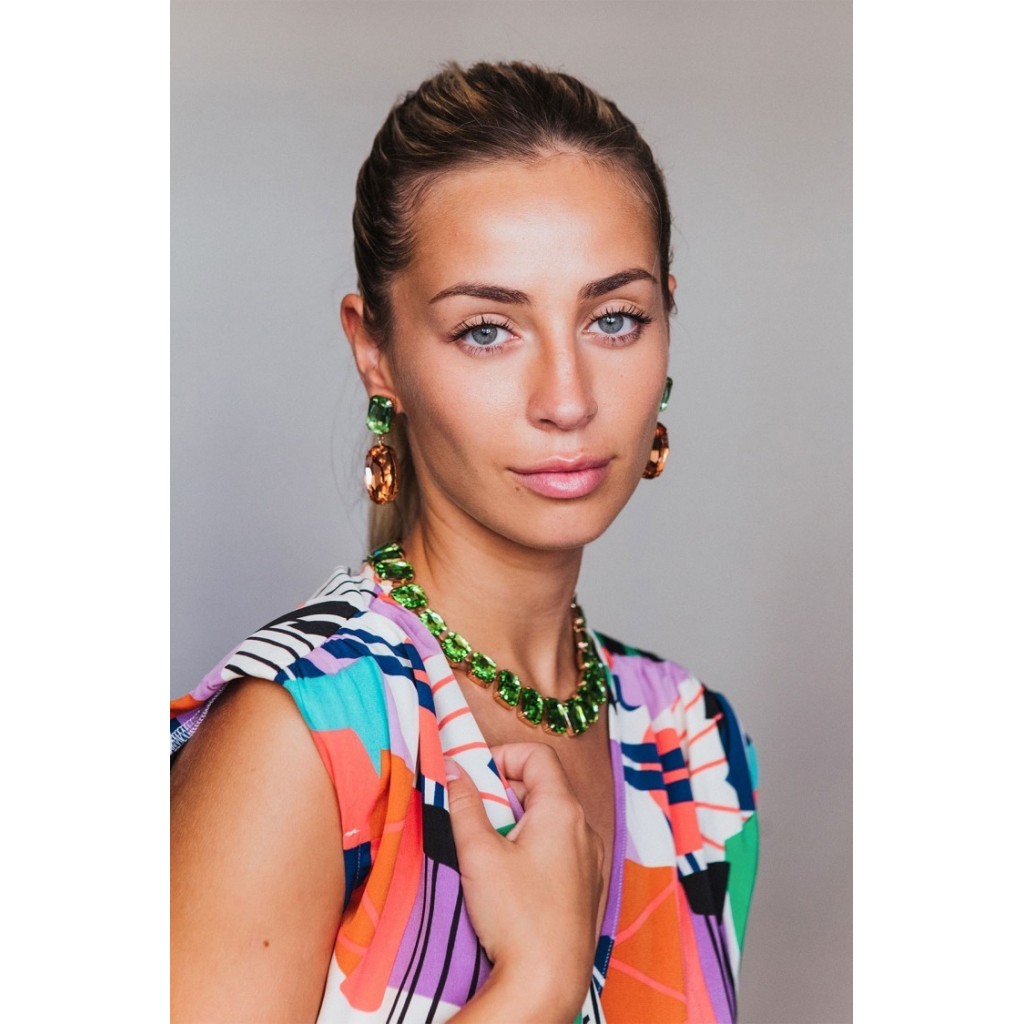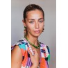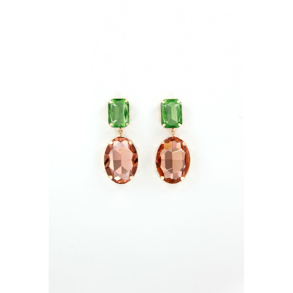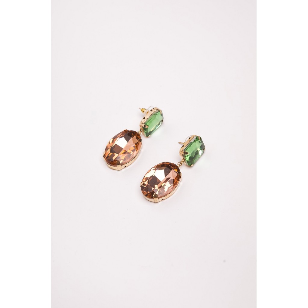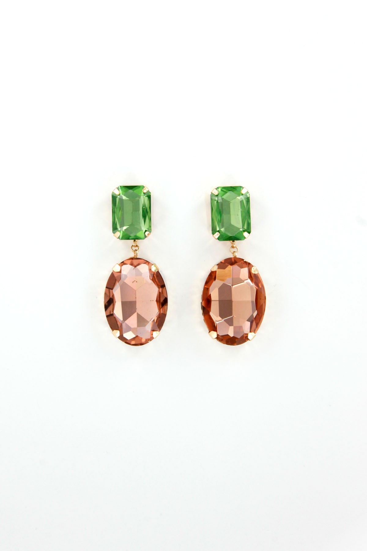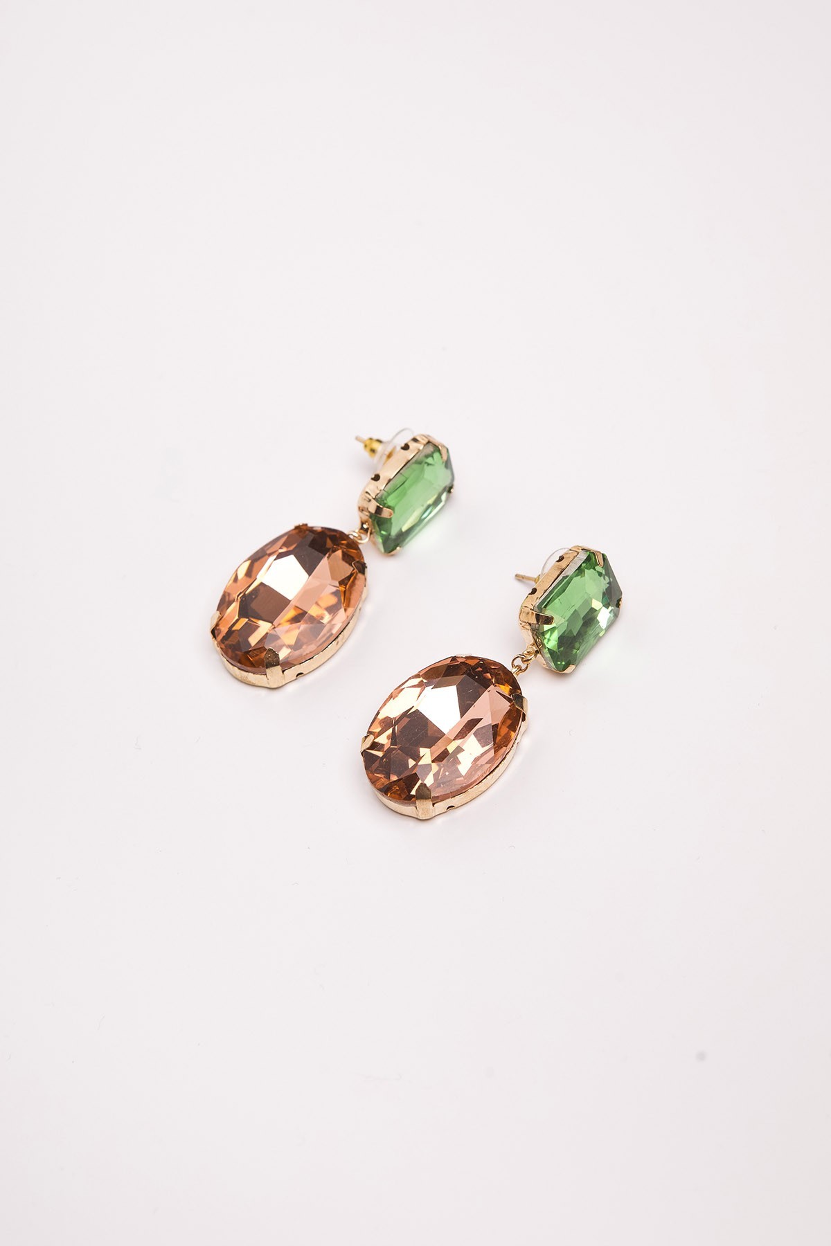Pendientes con piedra triangular y ovalada en tonos esmeralda y marrón.