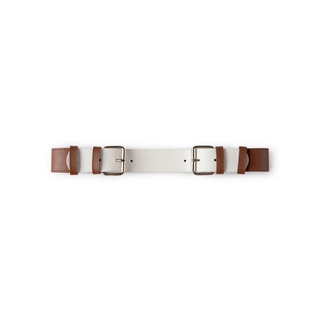 Cinturón bicolor en polipiel con doble hebilla.