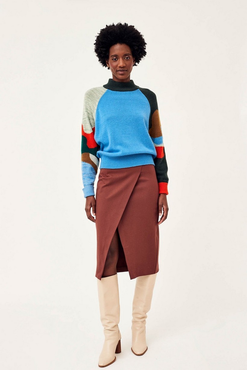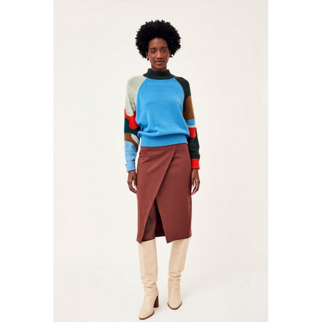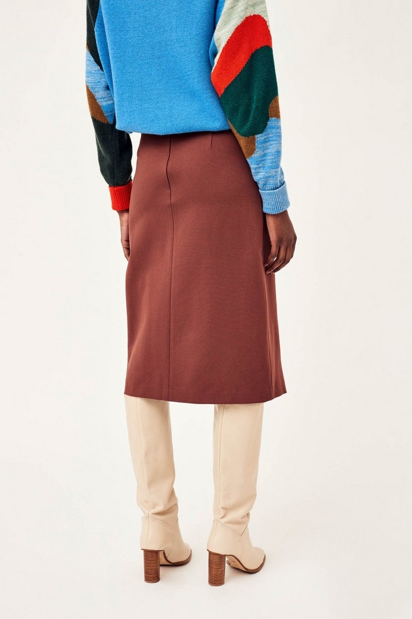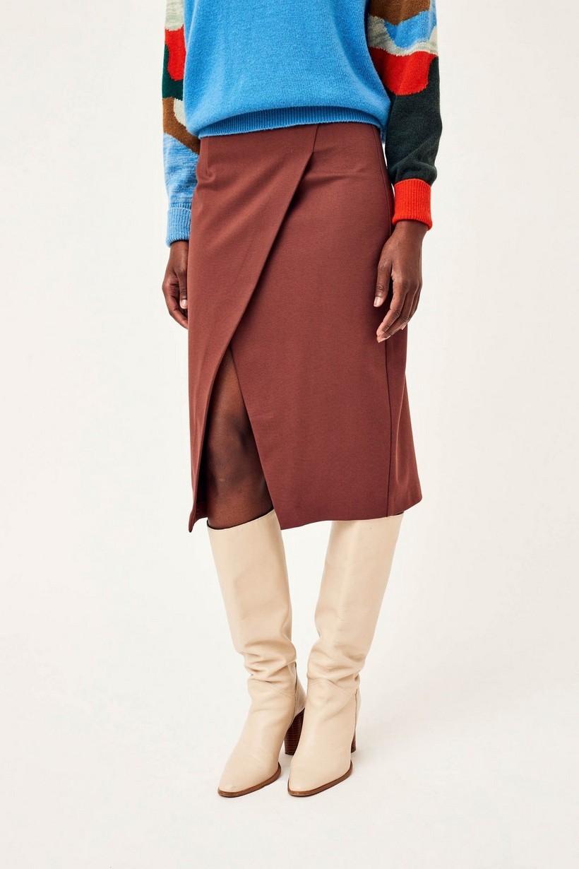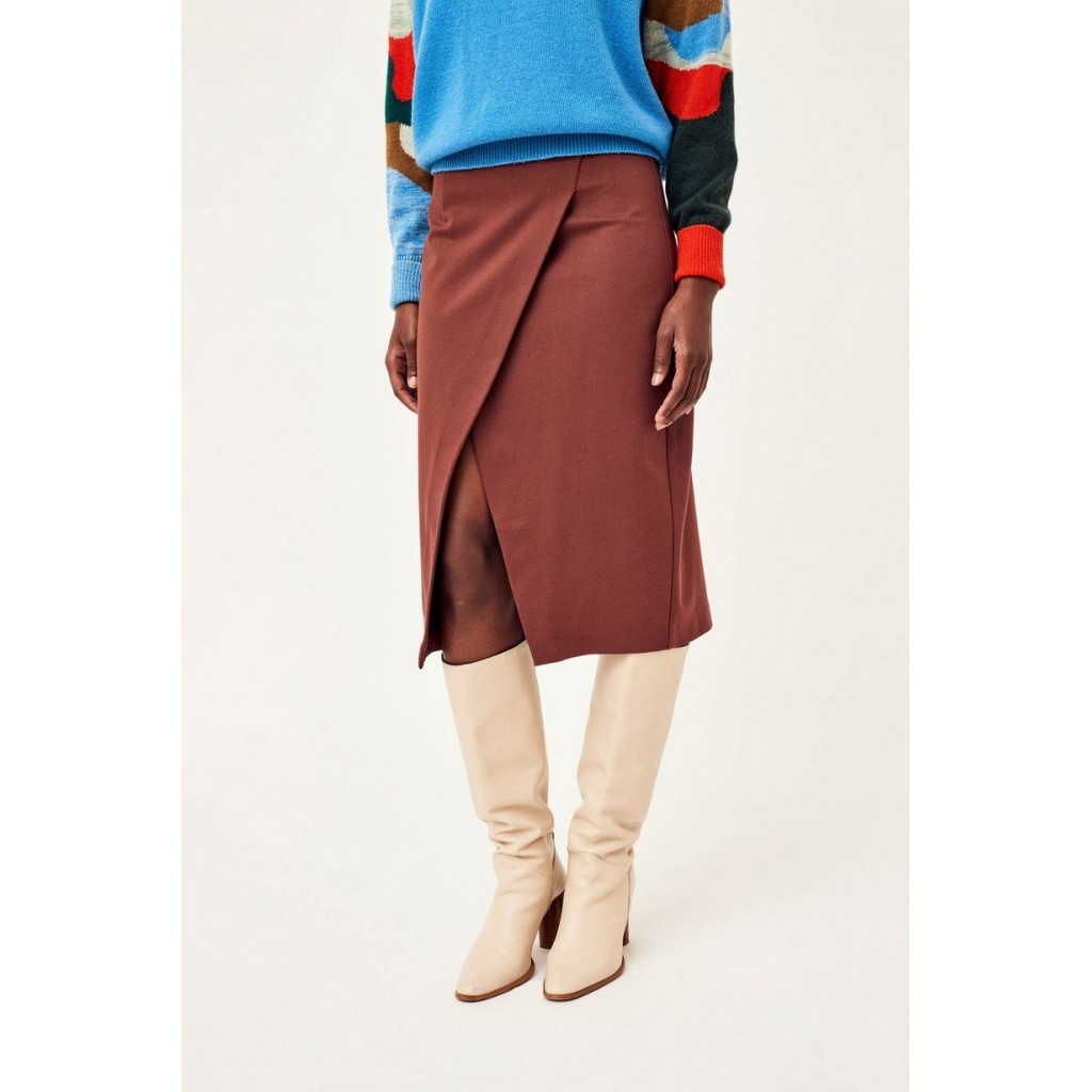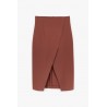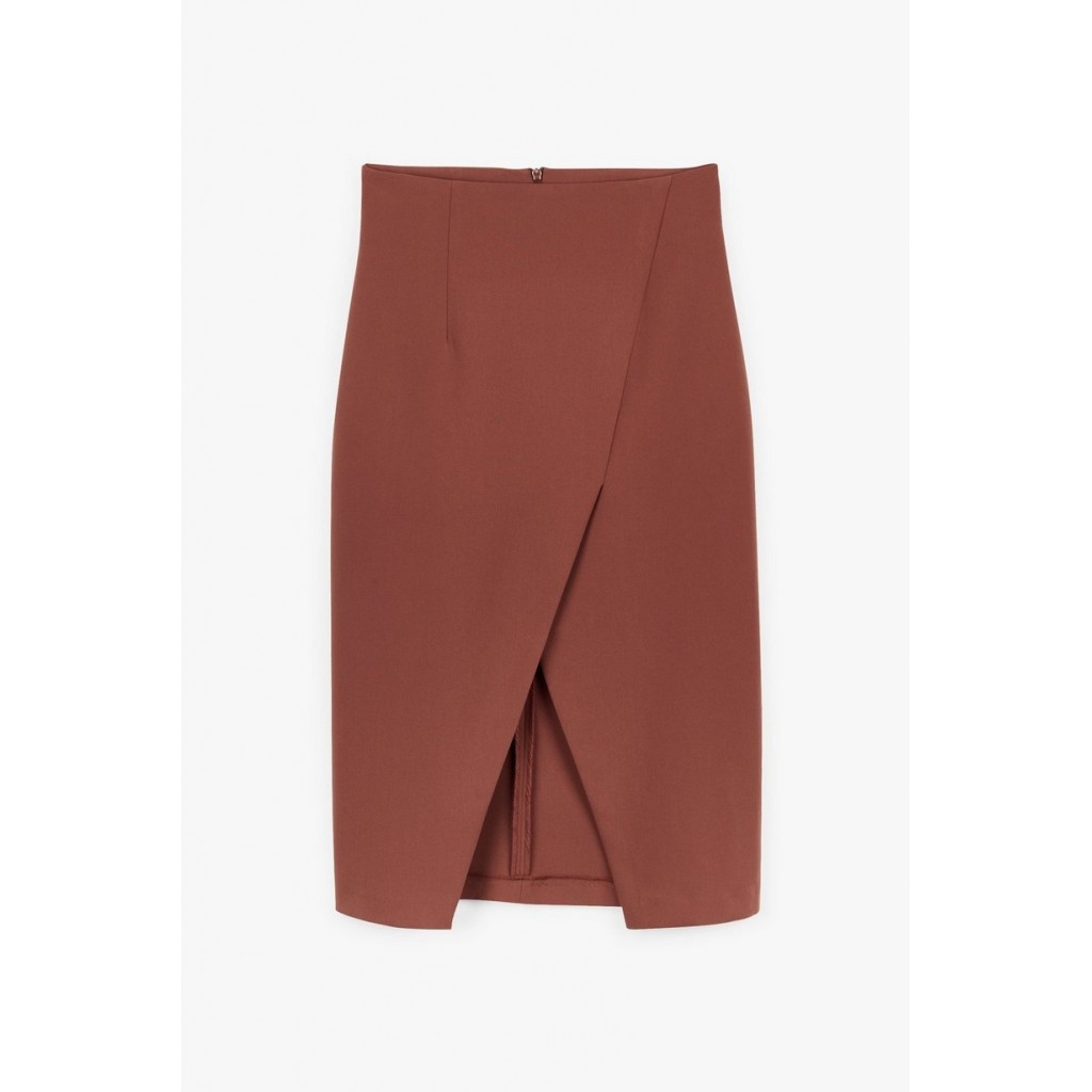 Con esta falda cruzada marrón para mujer, todos los atuendos se ven femeninos y con estilo. Puedes llevar esta falda midi entallada con un jersey de colores o con una blusa.