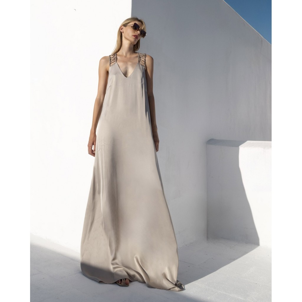 Vestido Satén Detalle Punto