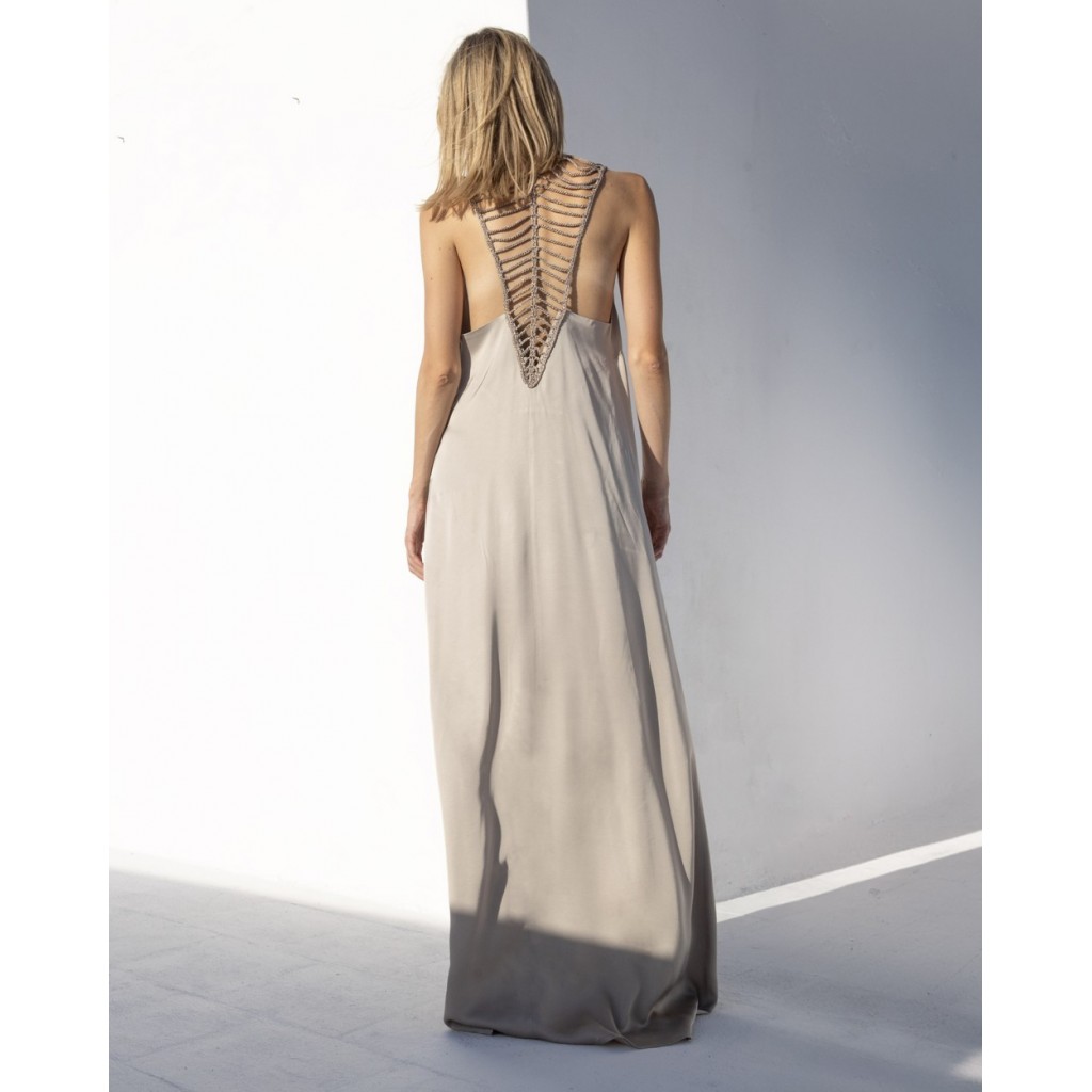 Vestido de satén con detalles de punto hechos a mano