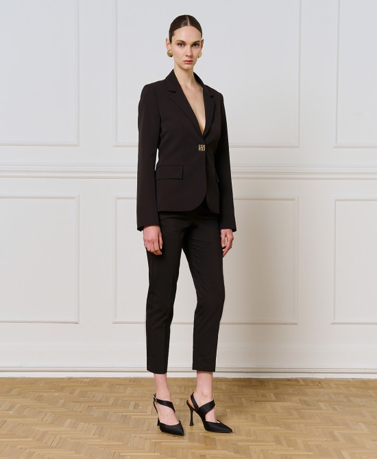 Blazer entallado con cuello de solapa y hombreras. Cuenta con bolsillos de solapa y cierre frontal con botón con monograma. Es una prenda imprescindible en cualquier armario elegante.