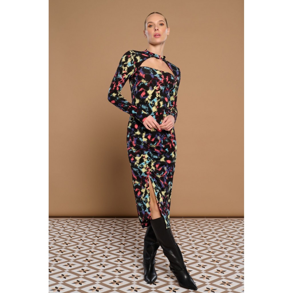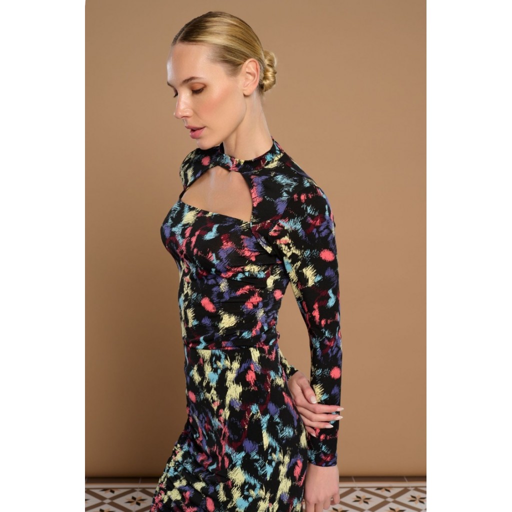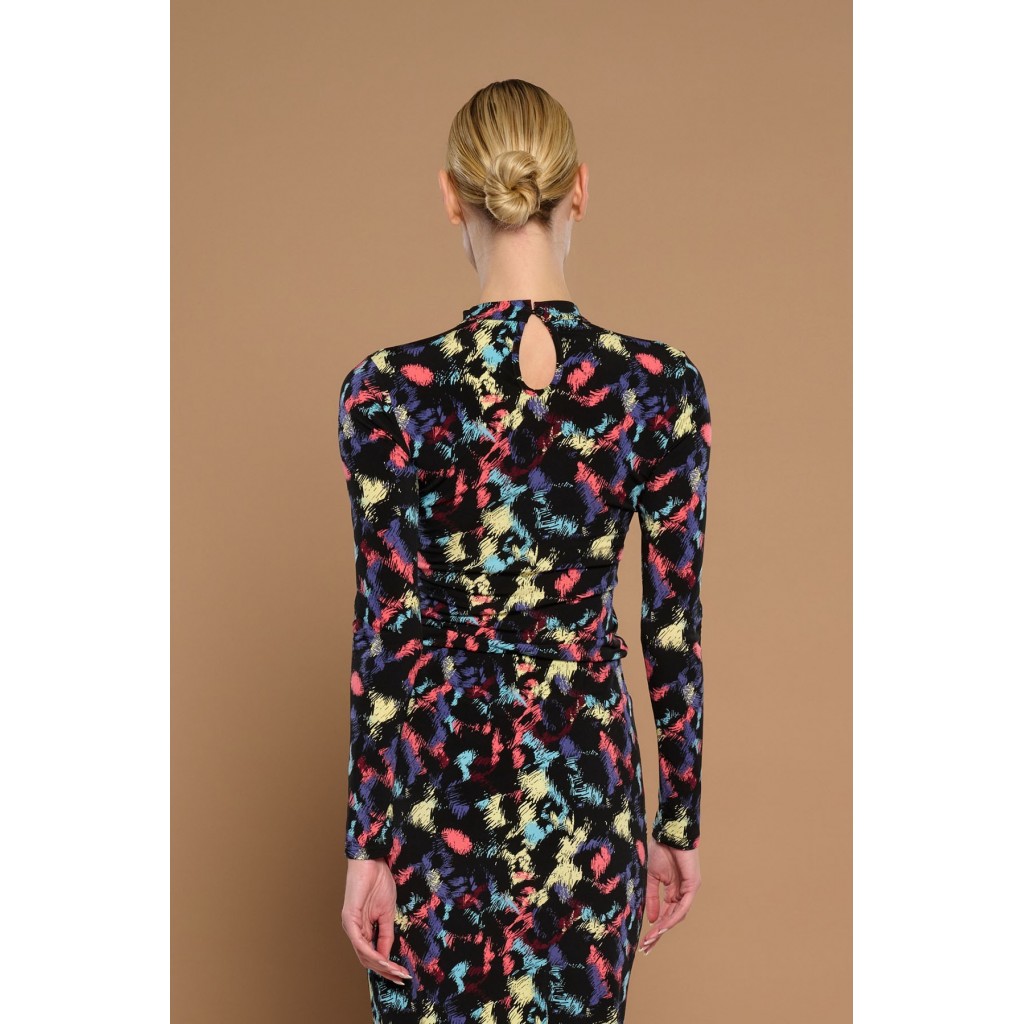 Camiseta de cuello chocker con escote cuadrado y manga larga. Estampado animal print. Tejido elástico.