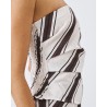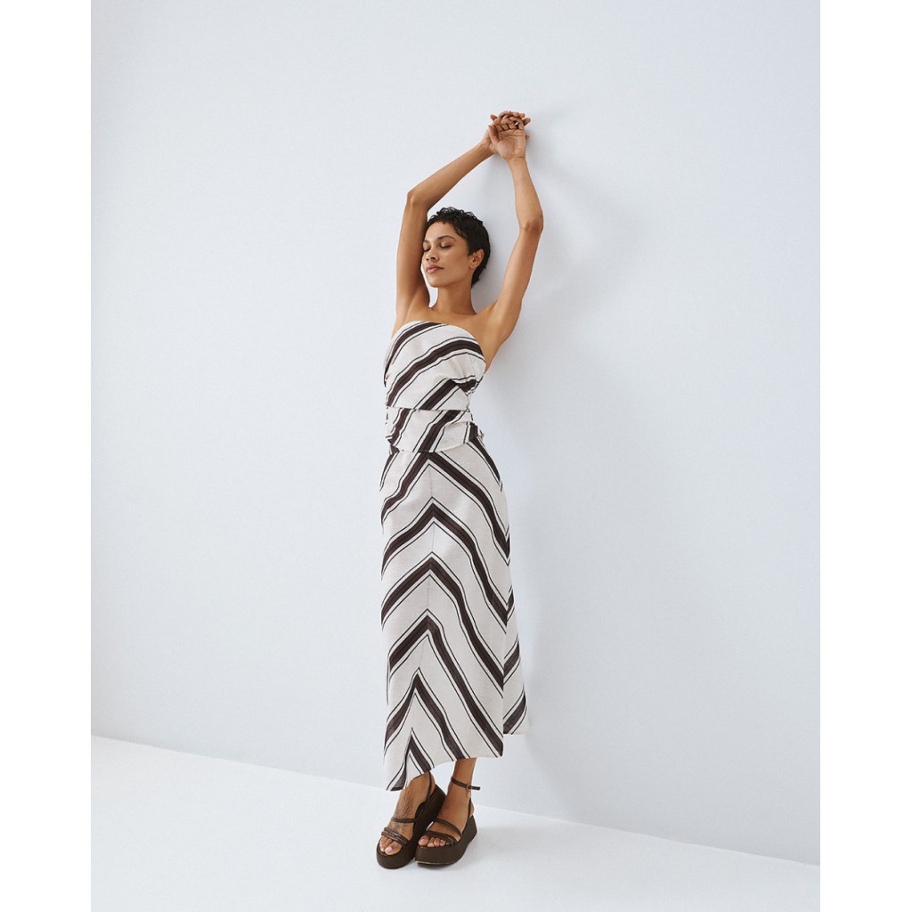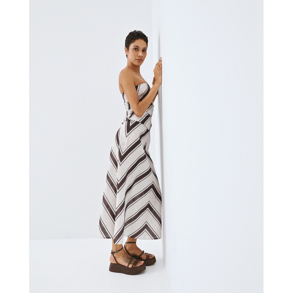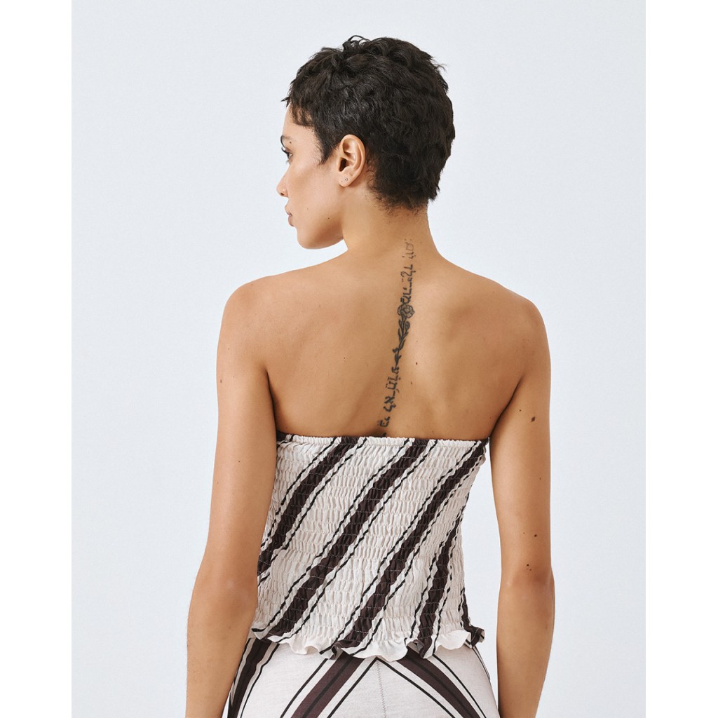 Top palabra de honor a rayas con fruncido lateral. Presenta espalda fruncida y borde superior elástico.