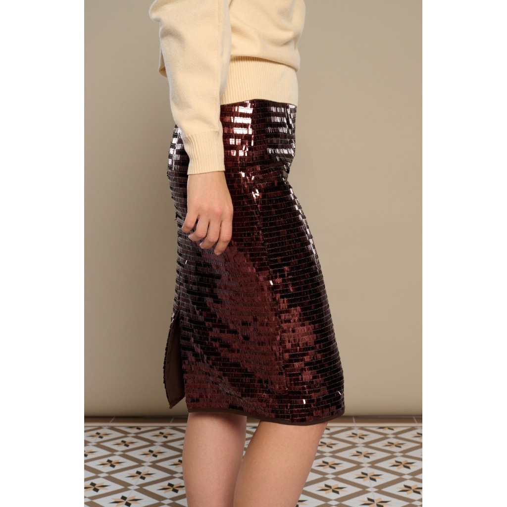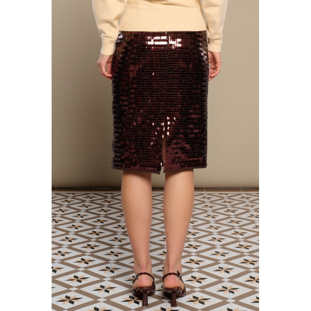 Falda midi de lentejuelas. Forro interior. Cierre con cremallera trasera oculta en costura.
