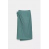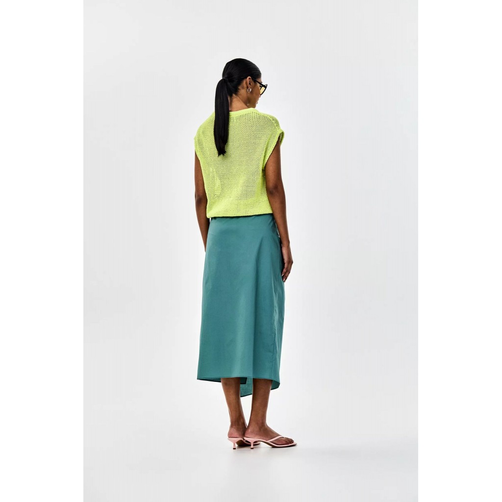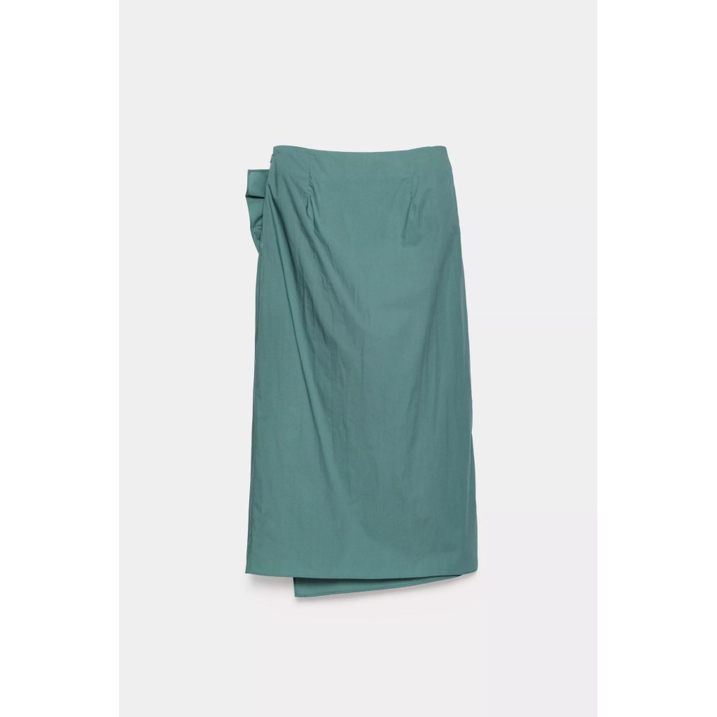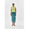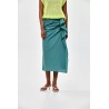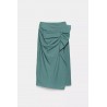 Falda midi verde para mujer con llamativos volantes laterales que le dan un toque festivo. Esta falda tan original es perfecta para una ocasión especial con una blusa elegante, o también queda genial con una camiseta para después.