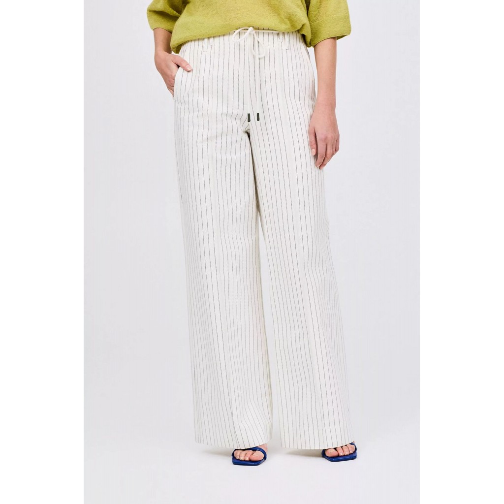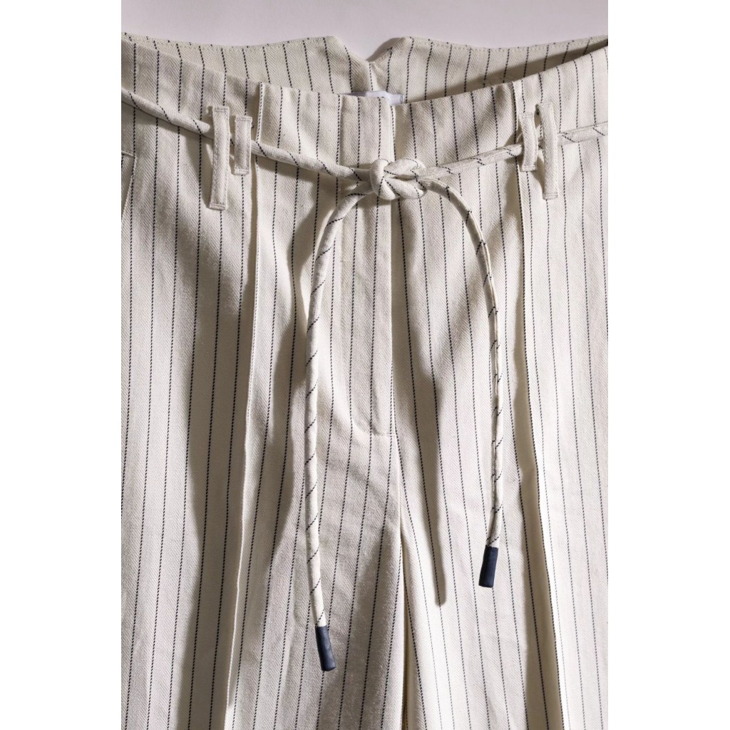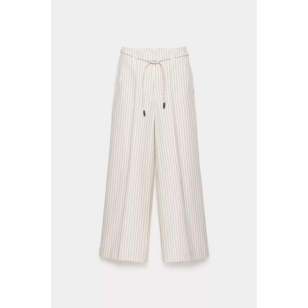 Esta primavera, estarás a la última con estos pantalones largos blancos de raya diplomática para mujer. Su cintura alta, perneras más anchas y un cinturón con cordón los hacen irresistibles. Dale un toque elegante y añade el cárdigan a juego.