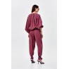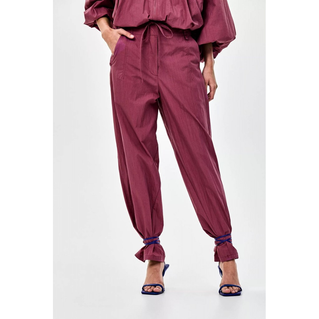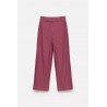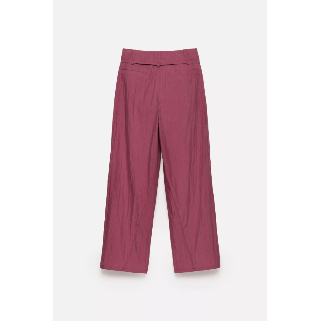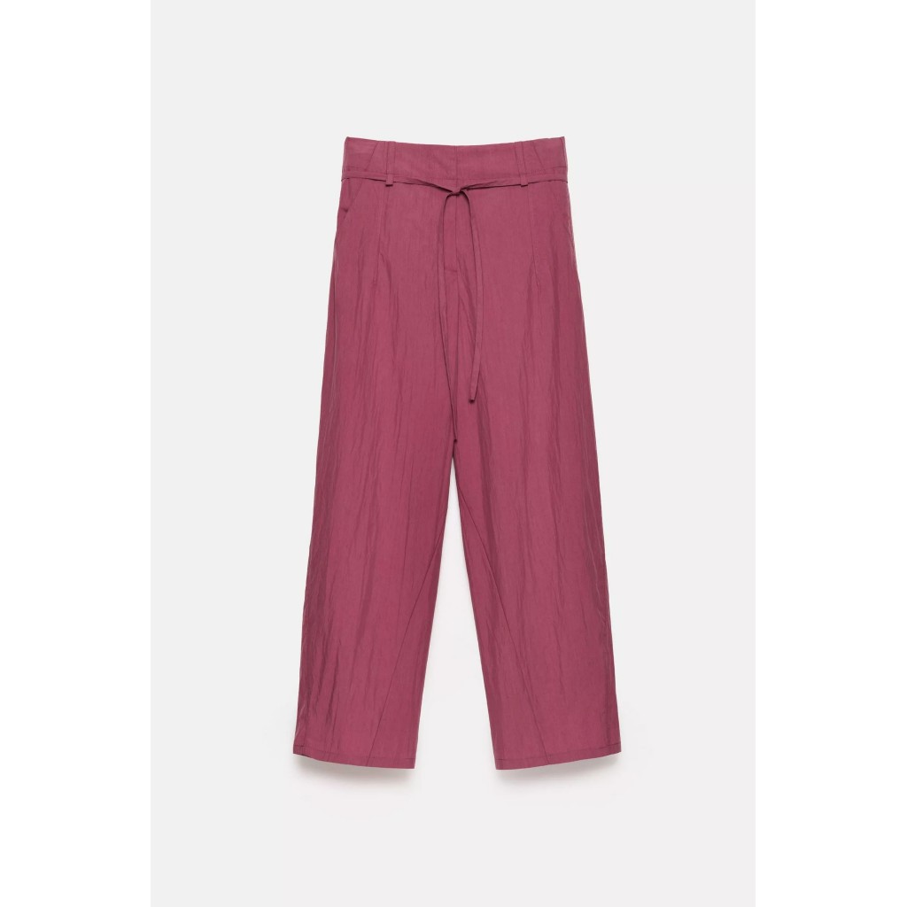 Pantalones tobilleros de color rosa púrpura para mujer, con cintura alta, perneras rectas, trabillas para cinturón y un lazo que realza la cintura. Luce estos pantalones fáciles de combinar esta primavera y verano para un look casual.