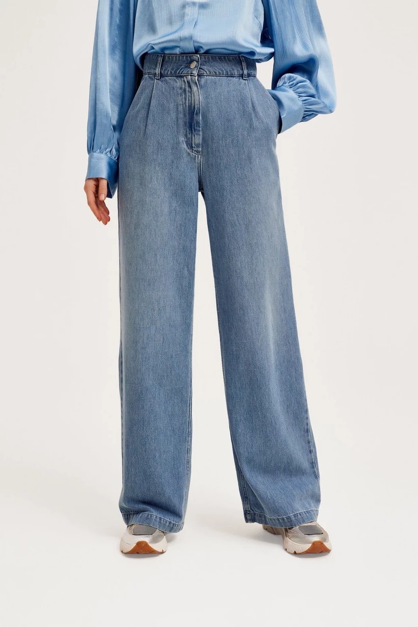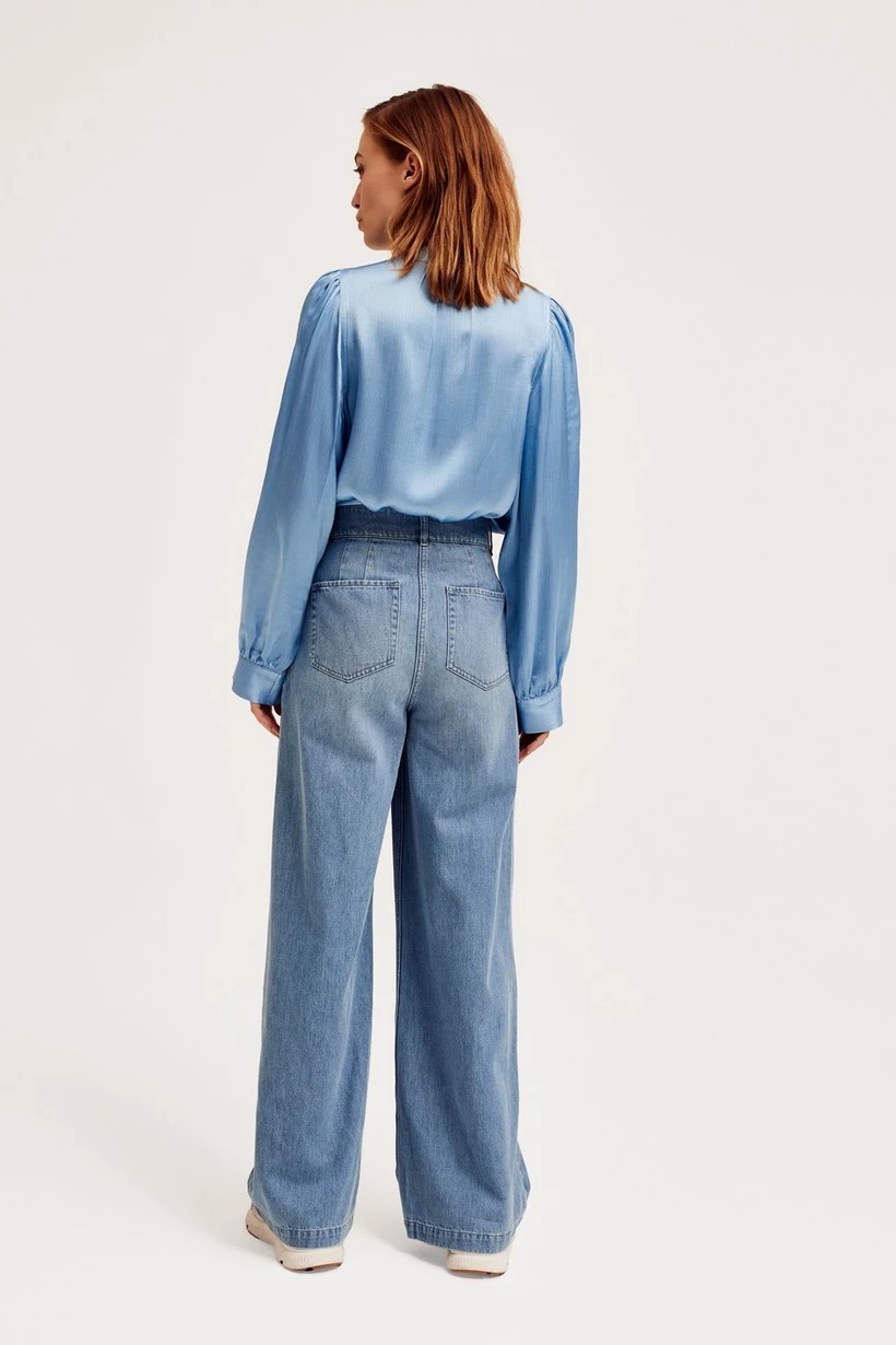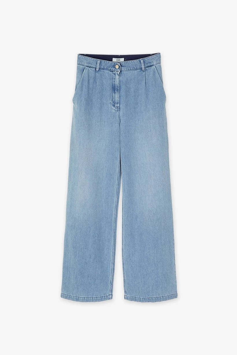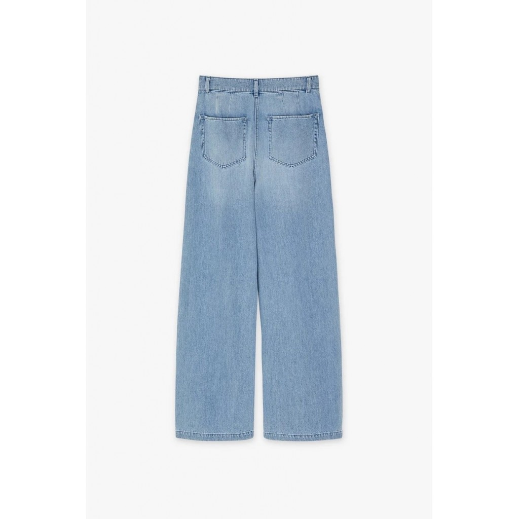 ¡Te presentamos tus nuevos jeans favoritos! Perneras anchas, talle alto, aspecto lavado y corte informal: estos vaqueros largos de color azul claro para mujer son tu combinación perfecta. Desde una blusa estampada hasta una camiseta y una blazer: con estos pantalones podrás completar todos tus conjuntos.