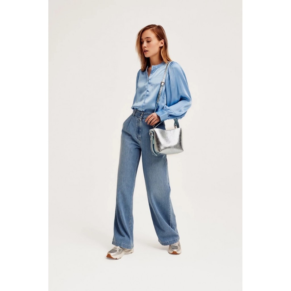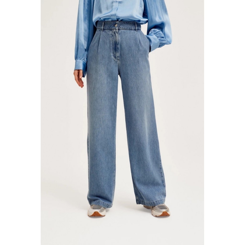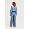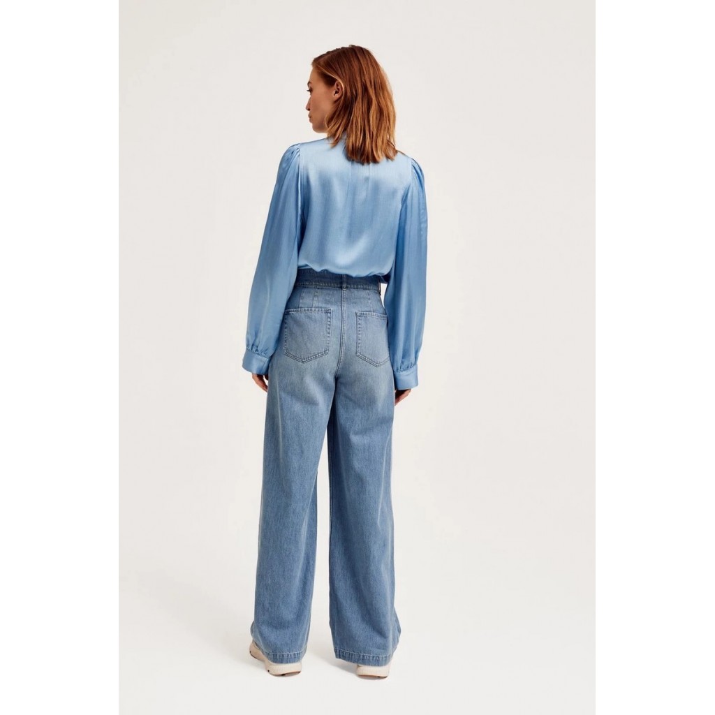 ¡Te presentamos tus nuevos jeans favoritos! Perneras anchas, talle alto, aspecto lavado y corte informal: estos vaqueros largos de color azul claro para mujer son tu combinación perfecta. Desde una blusa estampada hasta una camiseta y una blazer: con estos pantalones podrás completar todos tus conjuntos.