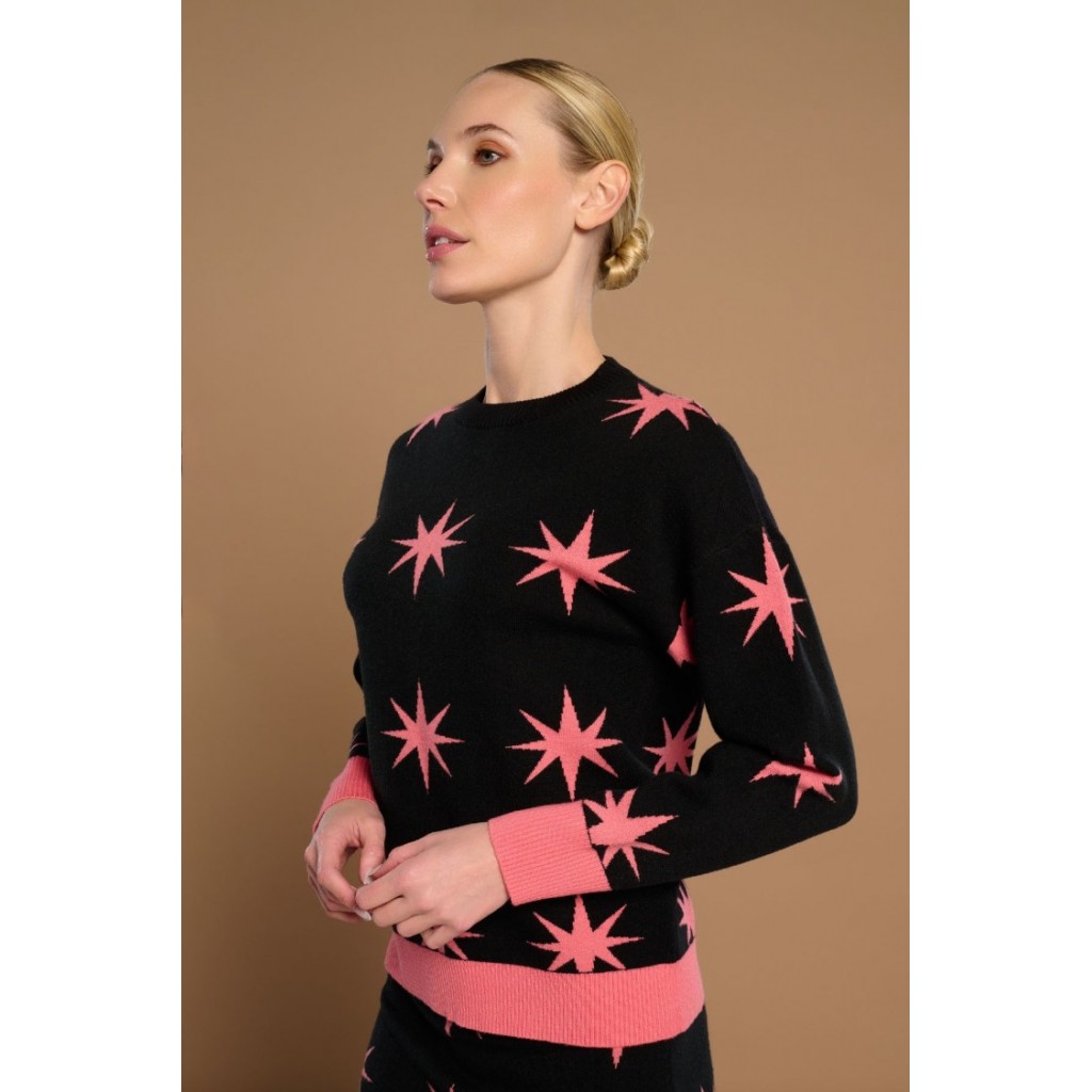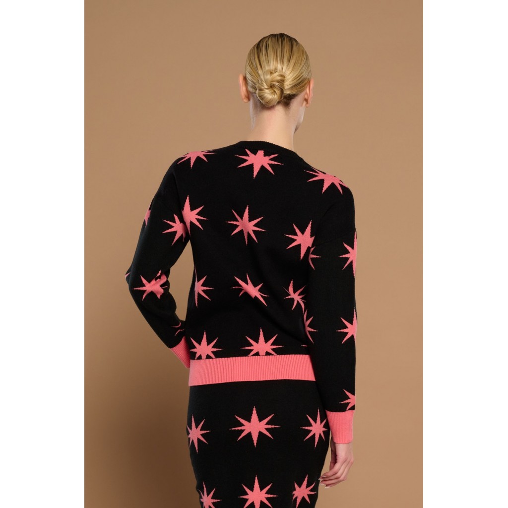 Jersey de punto con cuello redondo y manga larga. Cuello, cintura y mangas en rib. Tejido elástico. Estampado estrellas.