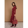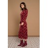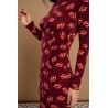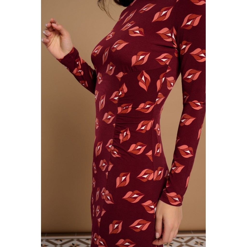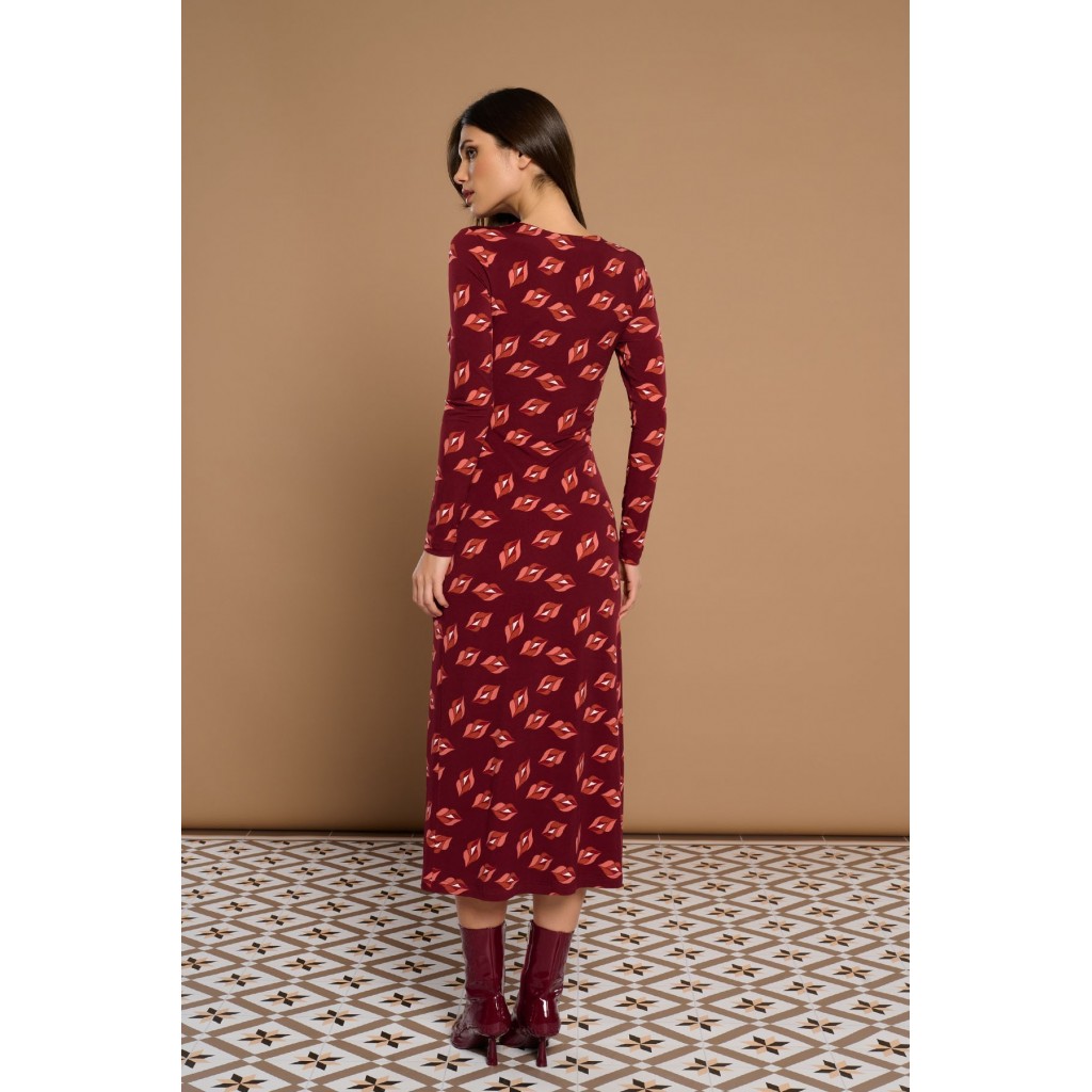 Vestido midi con cuello redondo y manga larga. Tejido elástico. Estampado de labios. Fruncidos en laterales.